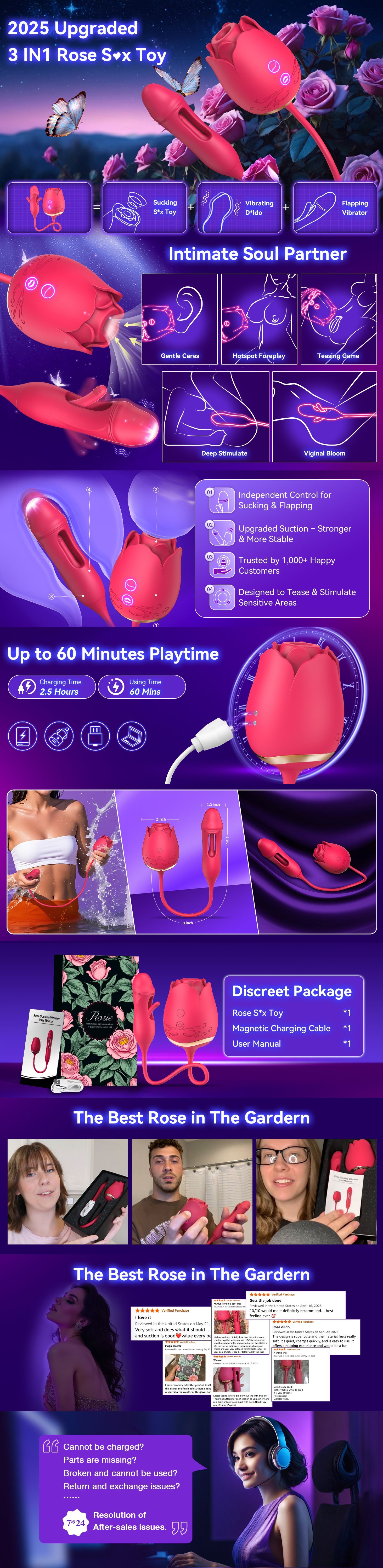 • Petal - Rose Suction Vibrator 10 Suction & 10 Flapping Modes G Spot Dildo For Women